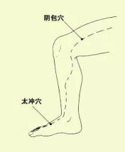 阴包穴:膝盖上方、大腿内侧五指宽。(正坐位双脚分开,轻敲大腿内侧,由上至下3—5遍后,膝盖上方五指宽的“阴包穴”会有强烈痛点,严重者痛不可摸)