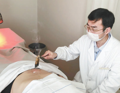 7月11日,北京中医药大学圣彼得堡中医中心医生正在用艾灸疗法为当地患者治疗慢性病。北京中医药大学圣彼得堡中医中心供图