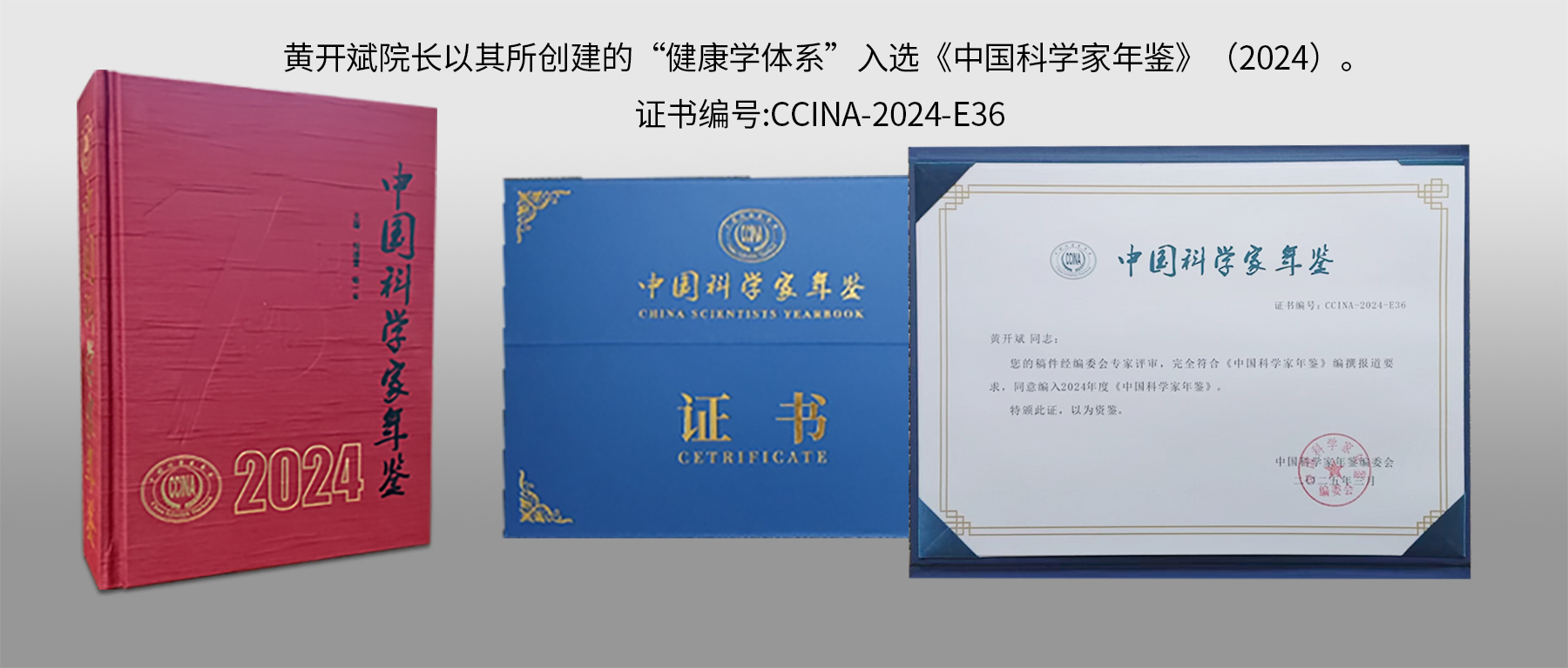 《中国科学家年鉴》(2024)对北京百川健康科学研究院黄开斌院长的收录,不仅是对其所创建的“健康学“思想理论和整个”健康学科专业体系”的认可,更是对他在“健康学科理论体系建设和实践推进方面”所做出的突出贡献的肯定。年鉴中详细介绍了黄开斌先生秉持一种建设治理健康的思路,跳出医学防治疾病模式,另辟新的理论模型,经历了20多年的不懈研究和实践探索,终成一家之言——《健康学大纲》的思想及健康学理论体系完成和健康中国战略实施方案。